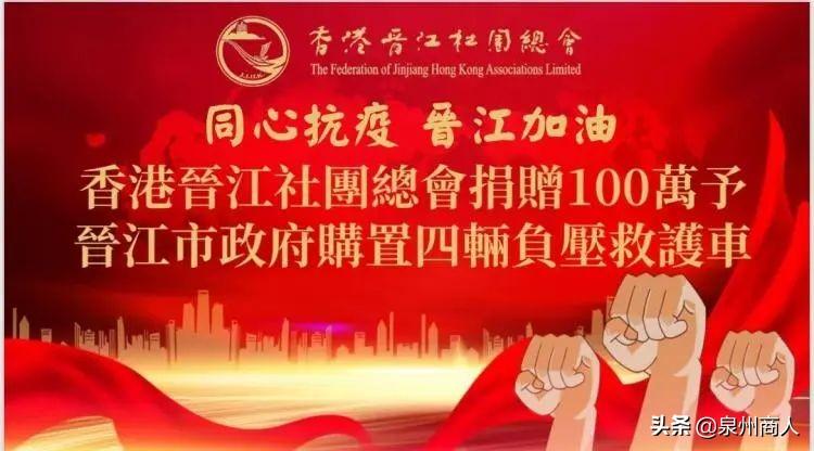 香港晋江社团总会:捐赠100万予晋江市政府购置四辆负压救护车