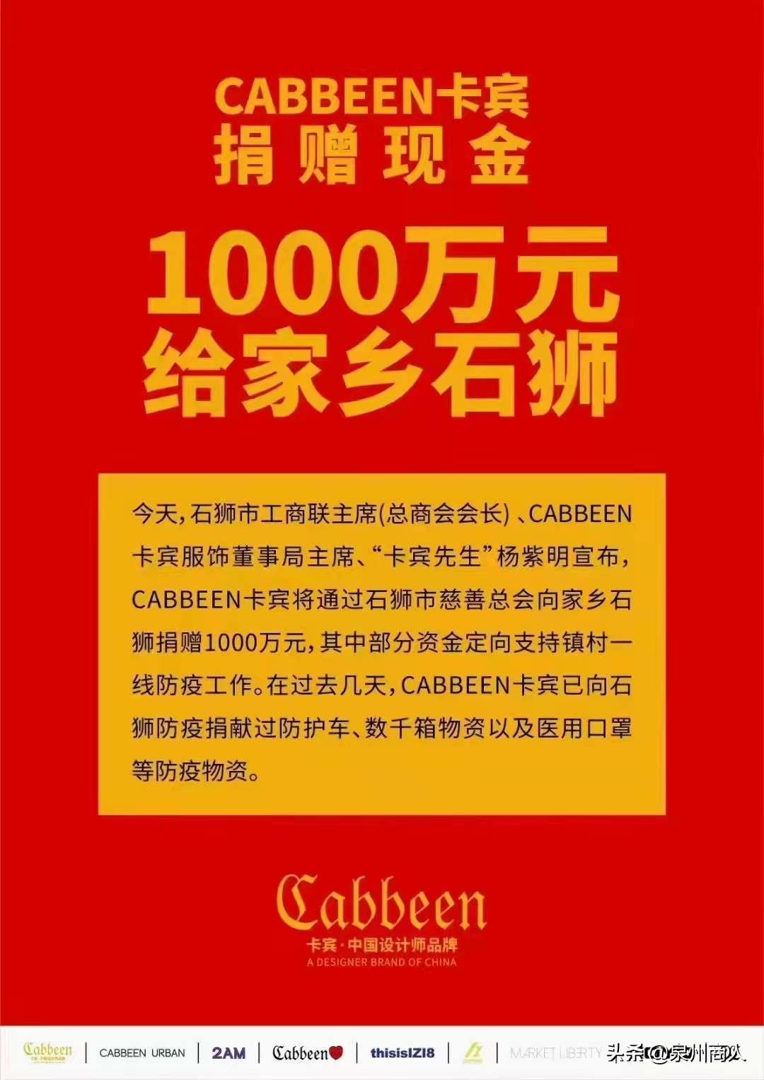 卡宾杨紫明:向泉州石狮抗疫捐赠1000万元